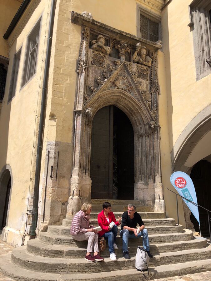 Der Rahmen – ein Traum. Das Publikum – begeistert. Und die Inszenierung und Choreografie – richtig gelungen! Möglich wurde dieser wundervolle Abschluss von Regensburg liest ein Buch im Keup-Saal am Haidplatz durch das Engagement von Alexandra von Fumetti und Heike Ternes (Konzept und Dramaturgie) sowie die großzügige Förderung durch die Rewag Kulturstiftung, vertreten durch Marcus Spangenberg und Raphaela Herzog. Herzlichen Dank!